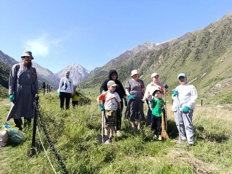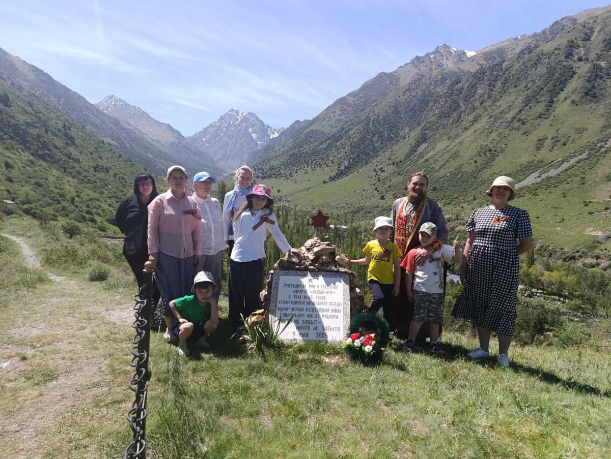 Накануне великого праздника - 80-летия Дня Победы, учащиеся и родители Воскресной школы, члены общины и социальный отдел епархии, совершили поездку в ущелье Иссык-Ата. На территории старейшего курорта, на вершине горы расположено кладбище воинов ВОВ. Мало кто знает, что здесь, на высокогорном союзном курорте в годы ВОВ фронтовики проходили восстановительное лечение. Те тяжелораненые бойцы, которых врачам не удалось спасти, нашли здесь последний приют.